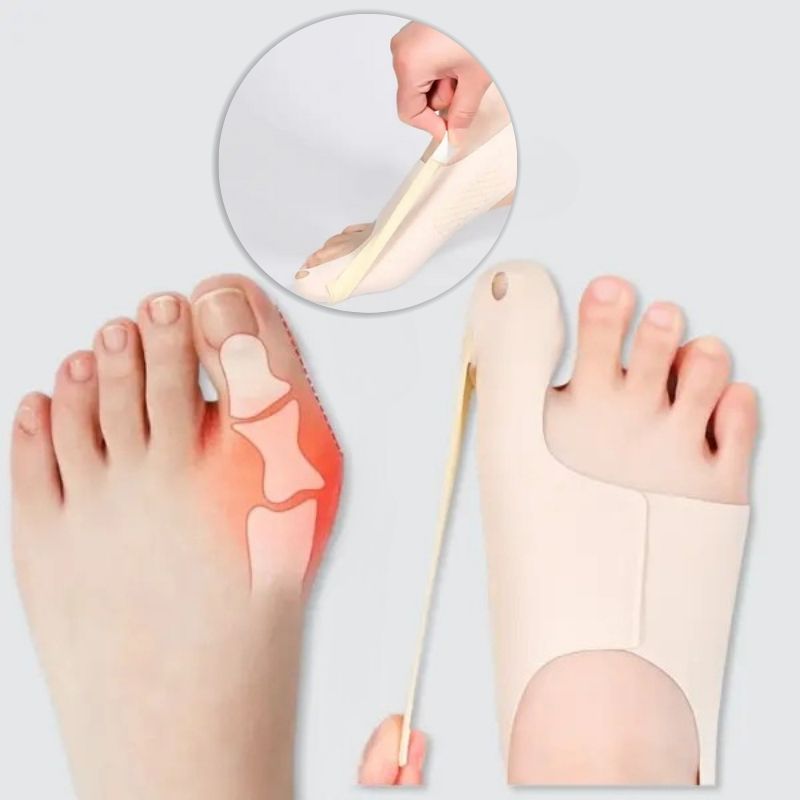 ValgusVital™ nutzt fortschrittliche biomechanische Prinzipien, um die Großzehe sanft neu auszurichten. Sein einzigartiges Druckverteilungssystem bietet sofortige Linderung und korrigiert gleichzeitig schrittweise die Hallux-Valgus-Deformität. Das ergonomische Design gewährleistet Komfort bei Tag und Nacht.